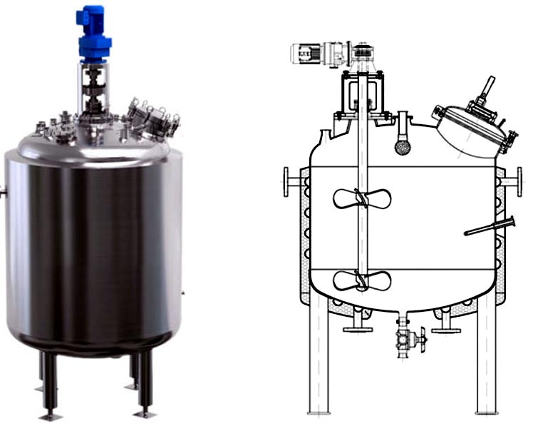 304、316L材料制作,以及設(shè)置加熱、冷卻裝置,以滿足不同的工藝和生產(chǎn)需要.加熱形式有夾套加熱、盤管加熱,該設(shè)備結(jié)構(gòu)合理、工藝先進