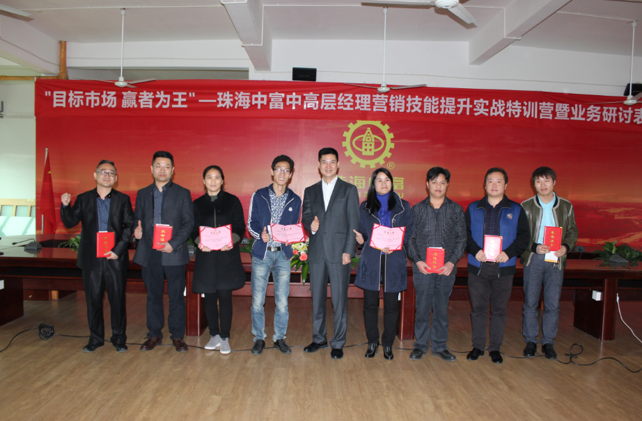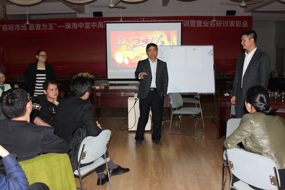 2015年12月27日,公司利用開設(shè)“珠海中富‘目標(biāo)市場、贏者為王’中高層營銷技能提升特訓(xùn)營”的機(jī)會,再次在支持中心舉辦了“2016年業(yè)務(wù)研討表彰會”,會議由人力資源部主持,董事長兼總經(jīng)理宋建明先生、總經(jīng)理特別助理吳逢彬先生、各職能部門總監(jiān)、各區(qū)總監(jiān)、各工廠廠長、各區(qū)財務(wù)總監(jiān)、優(yōu)秀員工代表、有獎?wù)魑墨@獎?wù)叽砉?0人參加了會議;本次會議旨在明確公司2016年業(yè)務(wù)目標(biāo)、分享實現(xiàn)目標(biāo)的推進(jìn)方案、落實廠長對工廠業(yè)務(wù)的責(zé)任、樹標(biāo)桿立榜樣、共商未來關(guān)鍵改善行動措施。會議主要有如下內(nèi)容: