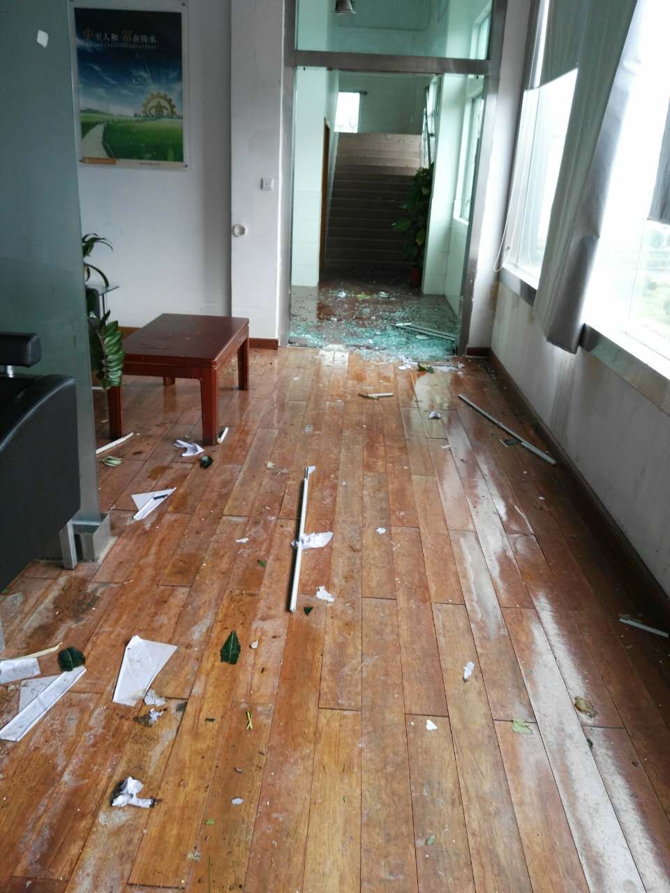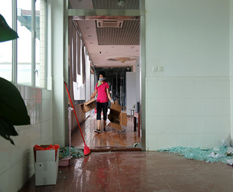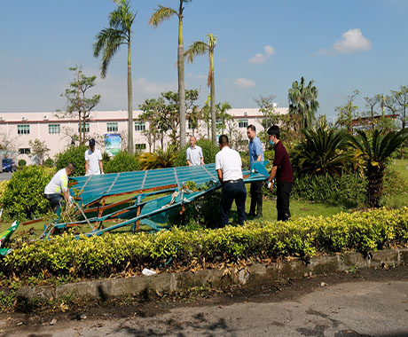 24日一早,劉錦鐘董事長、張海濱總經(jīng)理現(xiàn)場進行全方位巡查,根據(jù)公司受災(zāi)情況,提出調(diào)動資源優(yōu)先修復(fù)辦公區(qū)域在臺風(fēng)中破損的門窗、天花,以便第一時間恢復(fù)公司正常辦公生產(chǎn)環(huán)境。另一方面,配合保險公司人員清點公司受損資產(chǎn)以做好索賠工作。在公司領(lǐng)導(dǎo)的指導(dǎo)下,總經(jīng)辦及后勤工作人員從24日開始,緊張、高效而有序的開展各項災(zāi)后修復(fù),及應(yīng)對27日“帕卡”臺風(fēng)的準(zhǔn)備工作。
