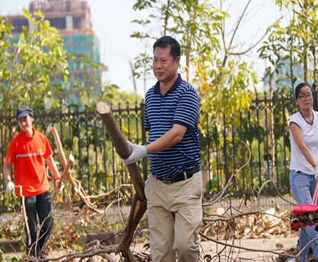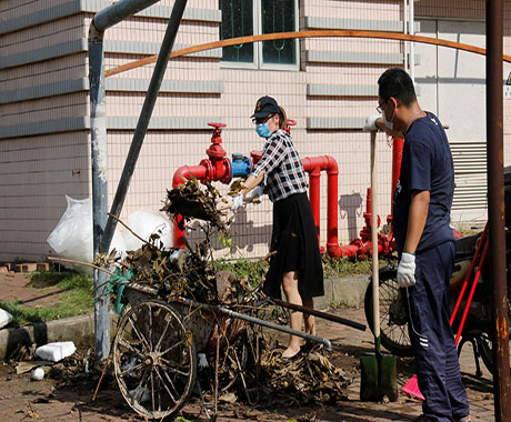 因2次臺風(fēng)連續(xù)而猛烈的破壞,園區(qū)內(nèi)隨處可見倒臥的樹木及斷枝、被吹落的屋頂鐵皮、保溫棉垃圾。為盡快恢復(fù)園區(qū)的環(huán)境,29日在中共中富總支部的倡議下,由黨員、志愿者組成的搶險小分隊,頂著毒辣的太陽及高溫天氣,大家不怕臟、不怕累、手持砍刀將倒下的大樹鋸斷搬走,用掃把、鐵鏟將園區(qū)內(nèi)吹倒的樹桿、鐵皮、玻璃等垃圾雜物一 一清理干凈。在清理現(xiàn)場,公司領(lǐng)導(dǎo)張海濱總經(jīng)理親臨現(xiàn)場參加并指導(dǎo)。在熱火朝天的現(xiàn)場,不論是辦公室人員還是車間人員,不管是男同胞還是女同胞,均不分彼此,全力而為,隔著屏幕都能感覺到大家滿滿的正能量。無情的臺風(fēng)雖然破壞了美麗的家園,卻也讓我們再次看到了一個個愿意奉獻、不怕辛苦的中富人。